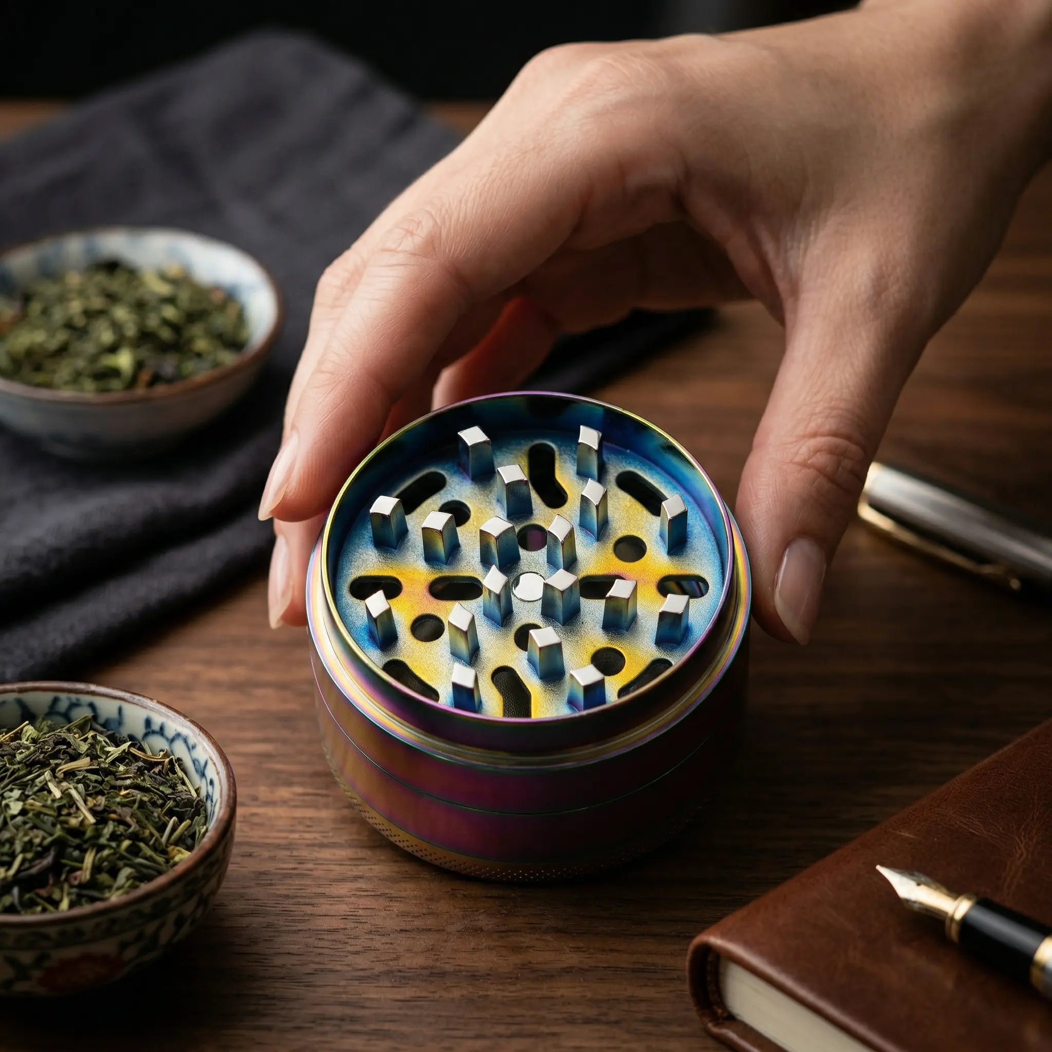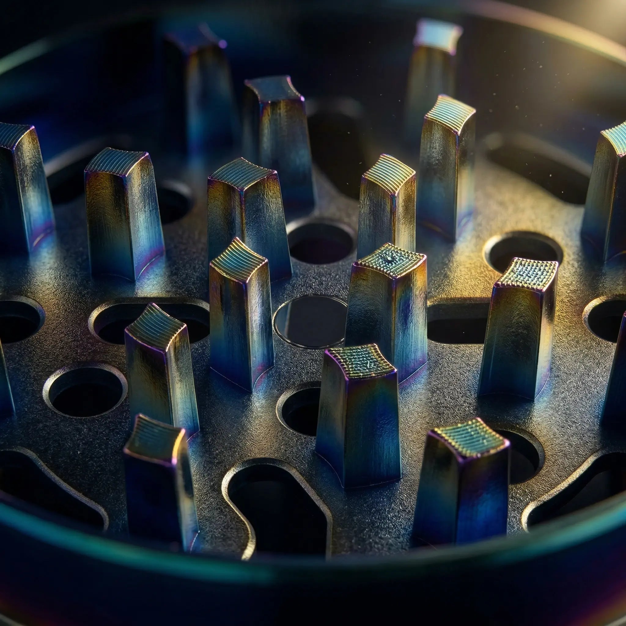 The multi-tone anodized coating delivers a sleek, futuristic look that resists scratches and fingerprints. Each piece reflects light differently, giving your grinder a unique, high-end appearance.